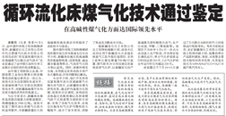 2022年作為常壓循環(huán)流化床煤氣化制合成氣技術(shù)的典型案例通過石化聯(lián)合會鑒定,鑒定委員會一致認為,該技術(shù)總體達到國際先進水平,在高堿性煤氣化方面達到國際領(lǐng)先水平,對新疆高堿煤開發(fā)和發(fā)展當(dāng)?shù)亟?jīng)濟具有積極意義